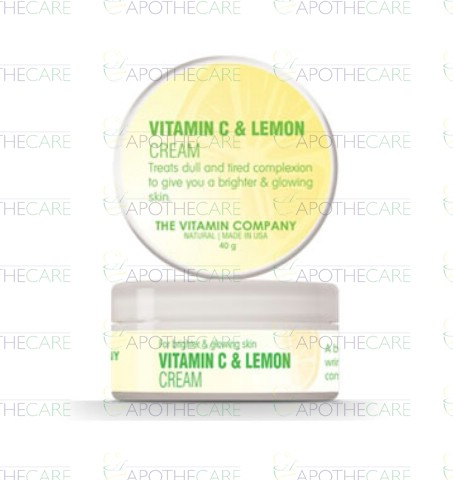 Product Name: Vitamin C & Lemon Cream 40gmProduct Form: CreamPack Size: 40gmMarketed By: The Vitamin CompanyGeneric Category: Skin care preparations Ingredients: lemon cream with Vitamin C