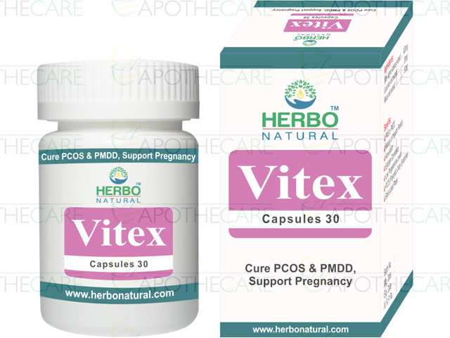 Product Name: Vitex Cap 30'sProduct Form: CapPack Size: 30'sManufacturer: Herbo NaturalIngredients: Vitex agnus-castus, Vitamin A, Vitamin C, Vitamin D, Vitamin E, Folic Acid, Vitamin B6 & B12, Liquorice root extract, Maca root extract, Zinc.