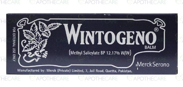 Product Name: Wintogeno Balm 35gProduct Form: BalmPack Size: 35GMarketed By: Merck (Pvt) Ltd Generic Category: NSAIDIngredients: Methylsalicylate