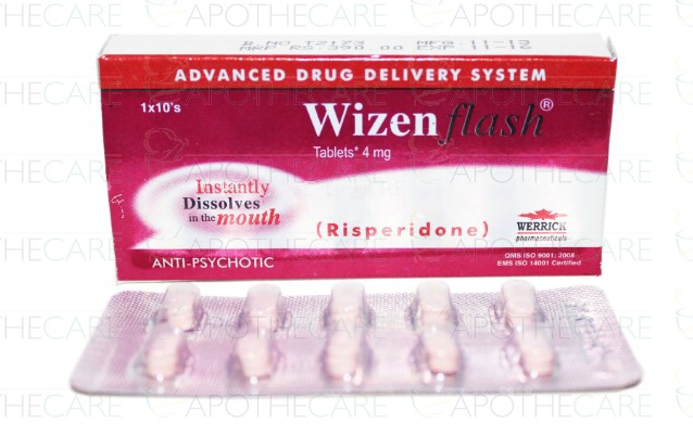 Product Name: Wizen Flash Tab 4mg 1x10'sProduct Form: TabletsPack Size: 1x10'sMarketed By: Werrick PharmaceuticalsGeneric Category: PsychosisIngredients: Risperidone
