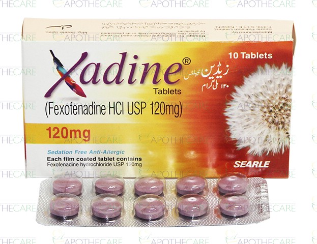 Product Name: XADINE Tab 120mg 10'sProduct Form: TabletsPack Size: 10'sMarketed By: SEARLE PAKISTAN Generic Category: ANTI-HISTAMINEIngredients: Fexofenadine