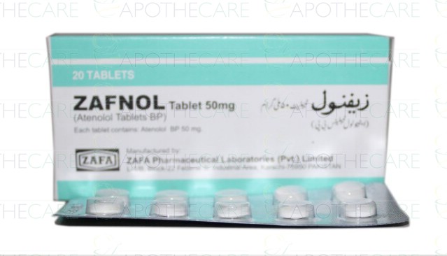 Product Name: Zafnol Tab 50mg 20'sProduct Form: TabletsPack Size: 20'sMarketed By: Zafa PharmaGeneric Category: Anti-HypertensiveIngredients: Atenolol