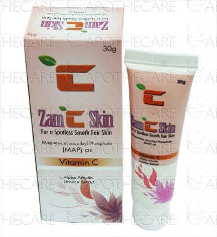 Product Name: Zam C Skin Cream 30gProduct Form: CreamPack Size: 30gMarketed By: Zam Zam CorporationGeneric Category: Skin Care PreparationIngredients: Alpha Arbutin Licorice Extract