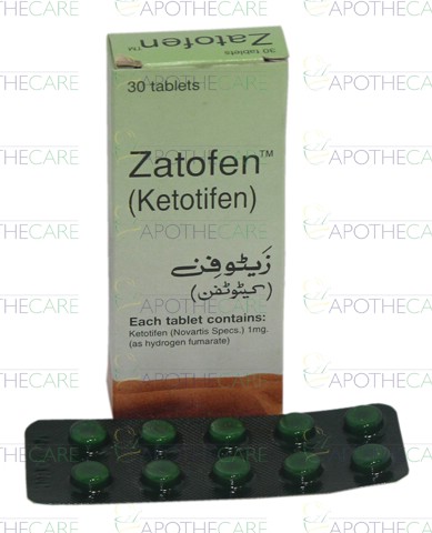 Product Name: Zatofen Tab 1mg 30'sProduct Form: Tablets Pack Size: 30's Marketed By: NOVARTIS PHARMA PAKISTAN LTDGeneric Category: Anti-HistamineIngredients: Ketotifen