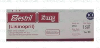 Product Name: Zestril Tab 5mg 14'sProduct Form: TabletsPack Size: 14'sMarketed By: ICI PAKISTAN LTD Generic Category: Anti-Hypertensive Ingredients: Lisinopril