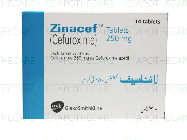 Product Name: ZINACEF Tab 250mg 14'sProduct Form: TabletsPack Size: 14'sMarketed By: Glaxosmithkline Pakistan LimitedGeneric Category: CEPHALOSPORIN ANTIBIOTICIngredients: Cefuroxime