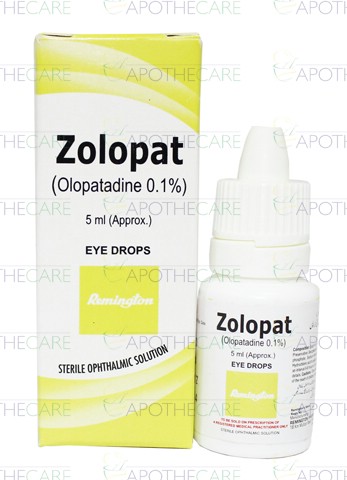 Product Name: Zolopat Eye Drops 0.1% 5mlProduct Form: DropsPack Size: 5mlMarketed By: Remington PharmaceuticalsGeneric Category: Anti-HistamineIngredients: Olopatadine